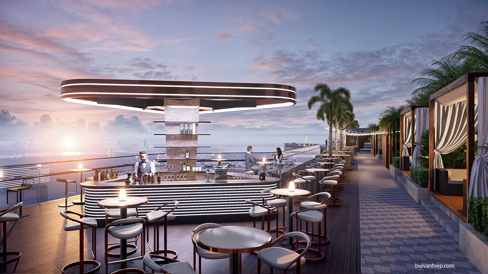 • Tâm điểm kết nối cộng đồng tinh hoa: Sự kết hợp hoàn hảo giữa Pool Bar nằm ngay sát mép nước dập dềnh và Bar ngoài trời sôi động mang đến không gian lý tưởng để thưởng thức cocktail tuyệt hảo, tổ chức các buổi tiệc đêm sang trọng và giao lưu, mở rộng mạng lưới quan hệ kinh doanh (networking).