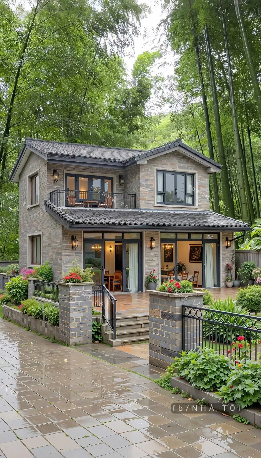 M1: Biệt thự song lập 4 tầng mái ngói, diện tích 470m2, 4 ngủ, 2 khách, 2 bếp.