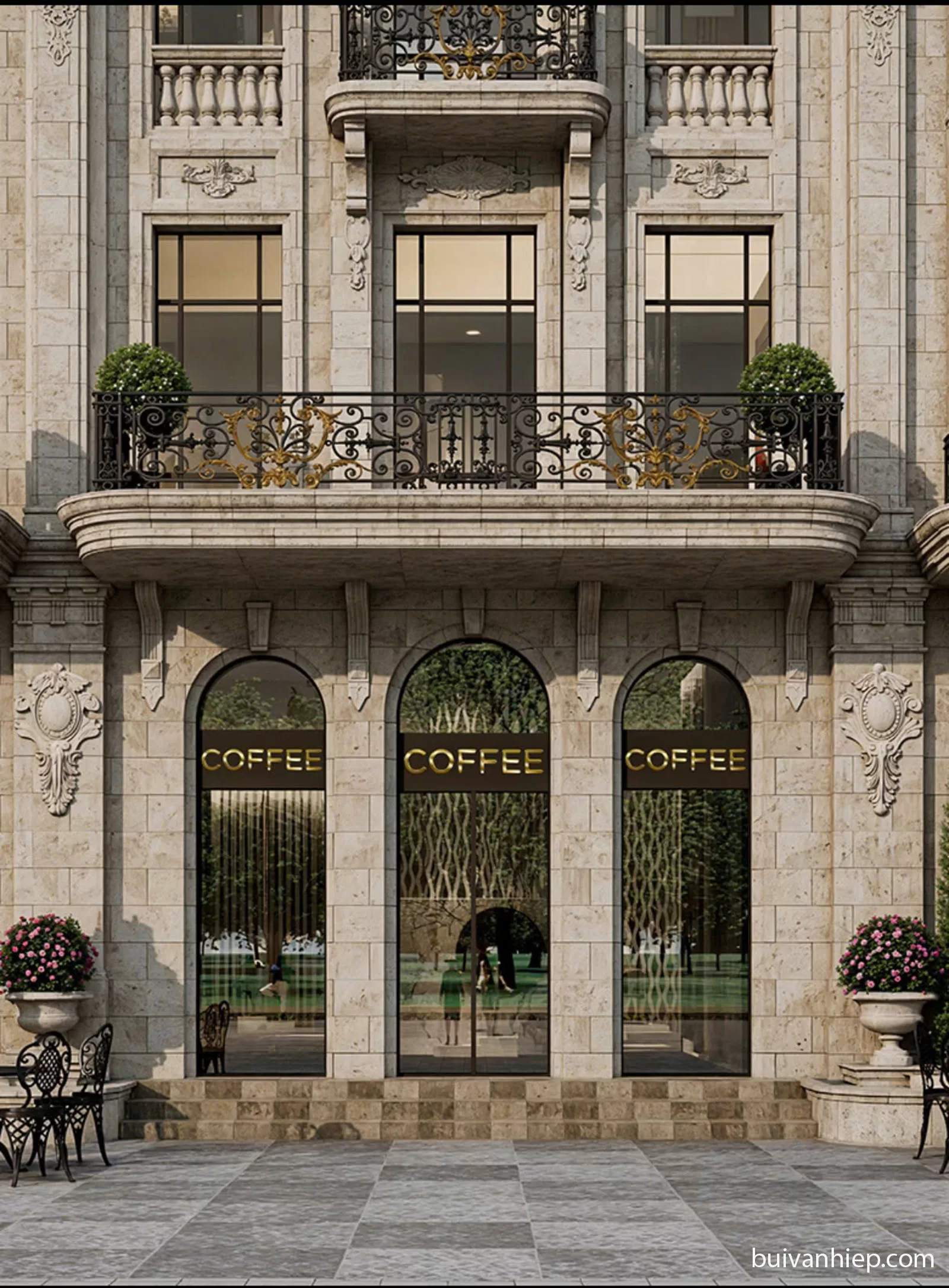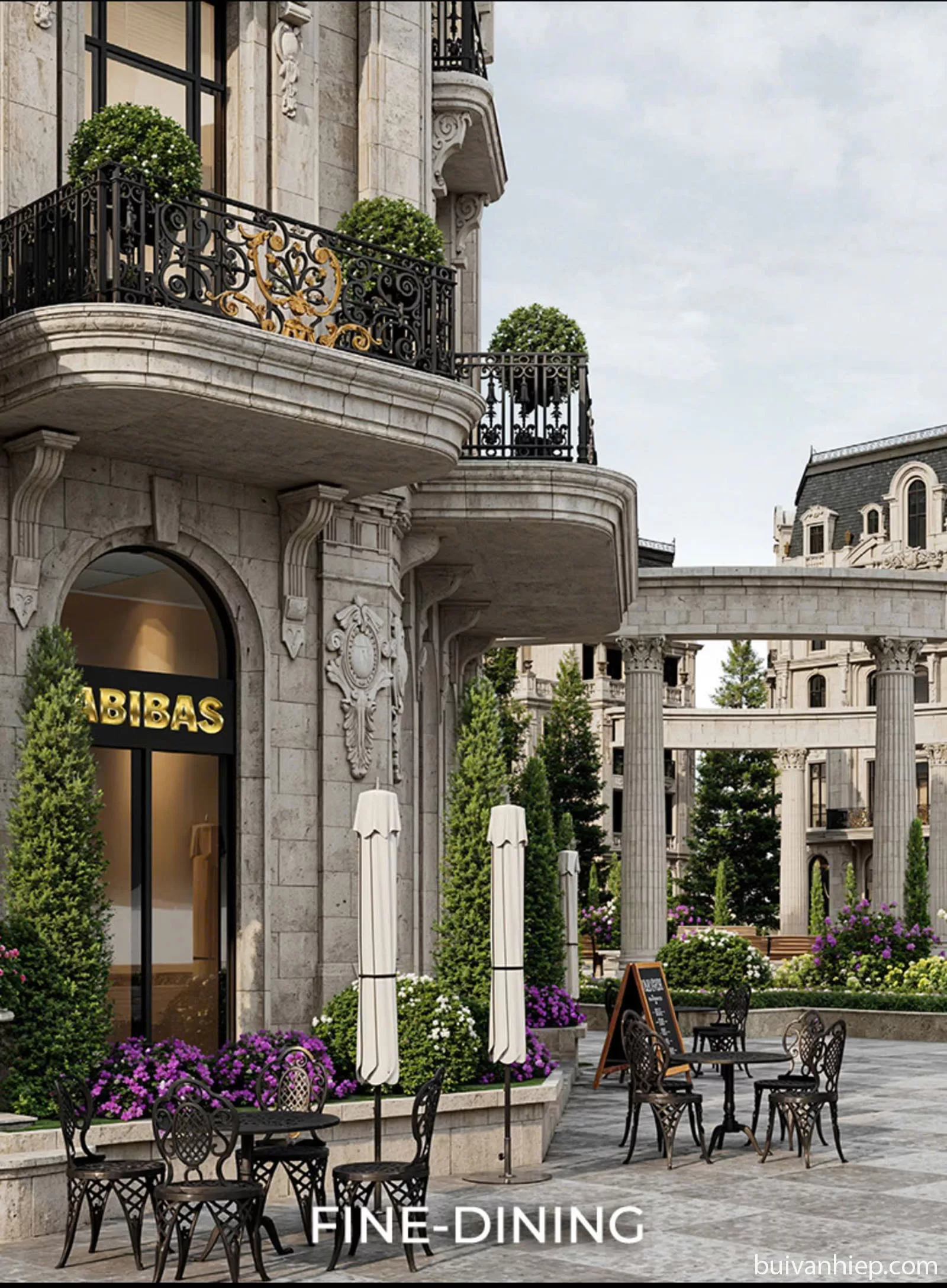 Thiết kế tối ưu cho kinh doanh với mặt tiền siêu rộng 6 – 7m. Hệ cửa kính lớn xuyên suốt mặt tiền kết hợp cùng mái hiên phong cách Parisian café tạo nên không gian thanh lịch, cực kỳ lý tưởng để vận hành cửa hàng flagship, boutique thời trang, nhà hàng fine dining hay phòng trưng bày nghệ thuật cao cấp.