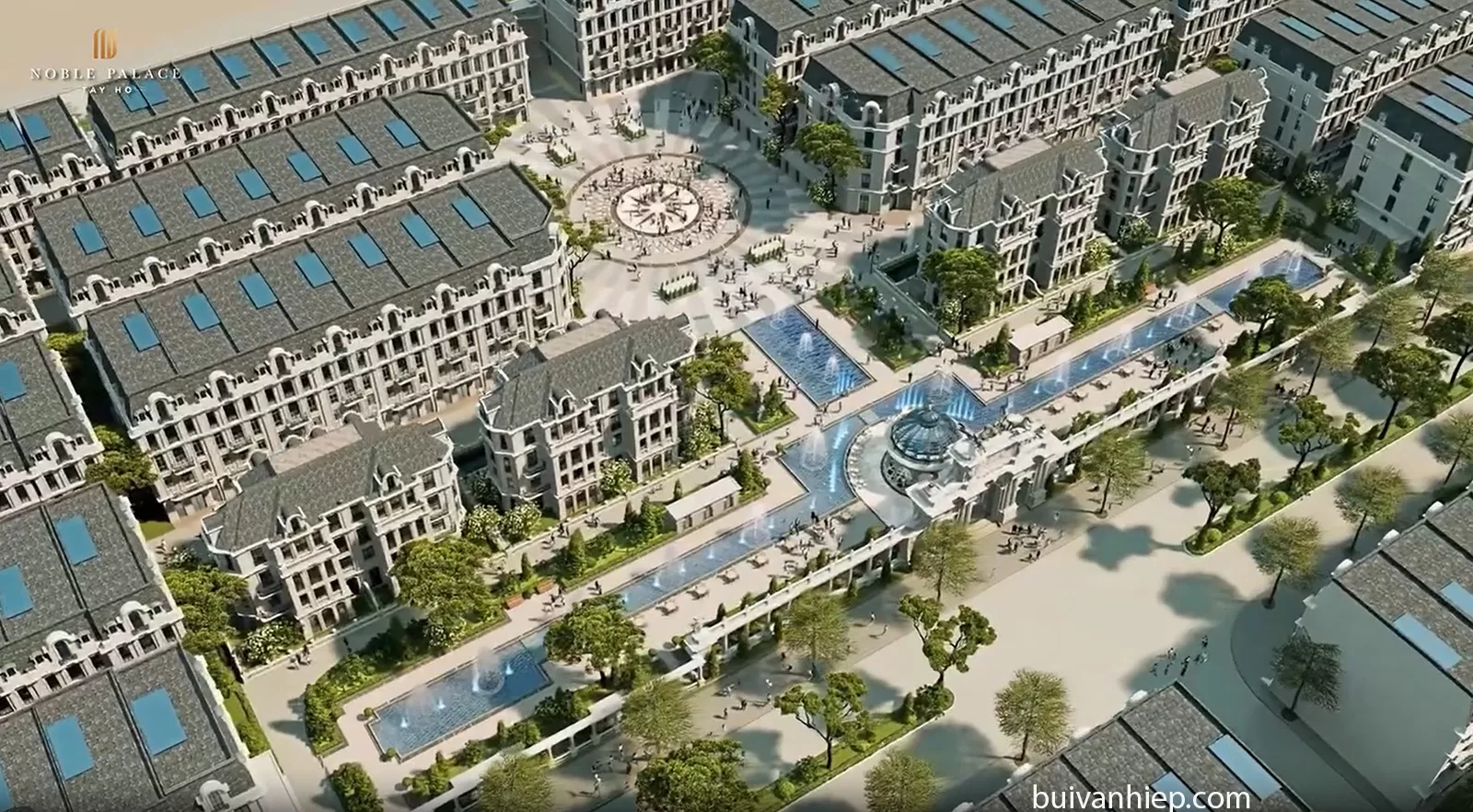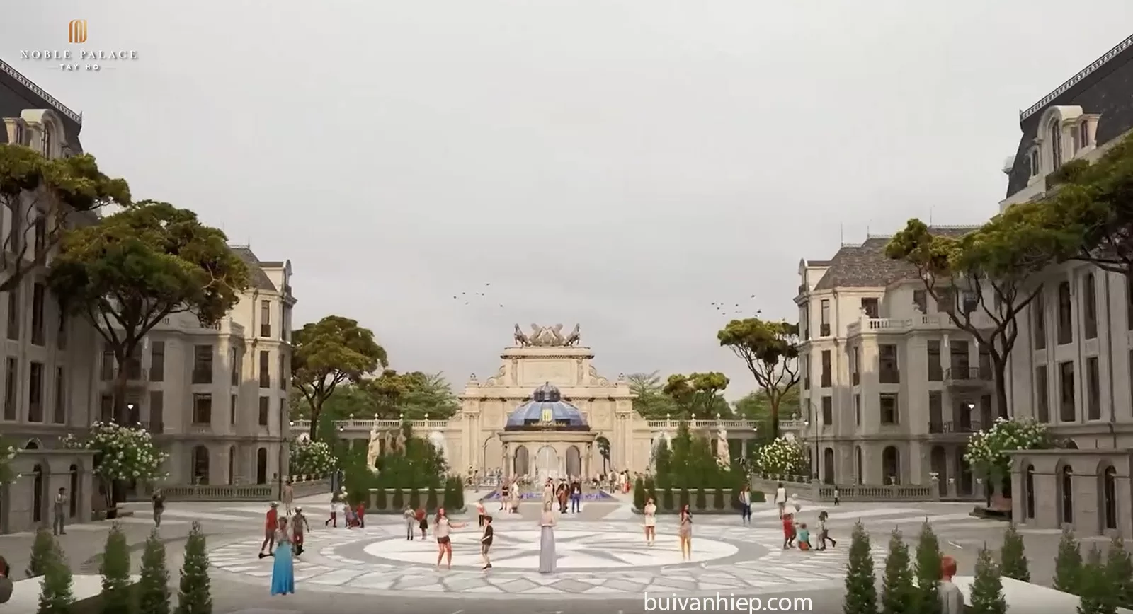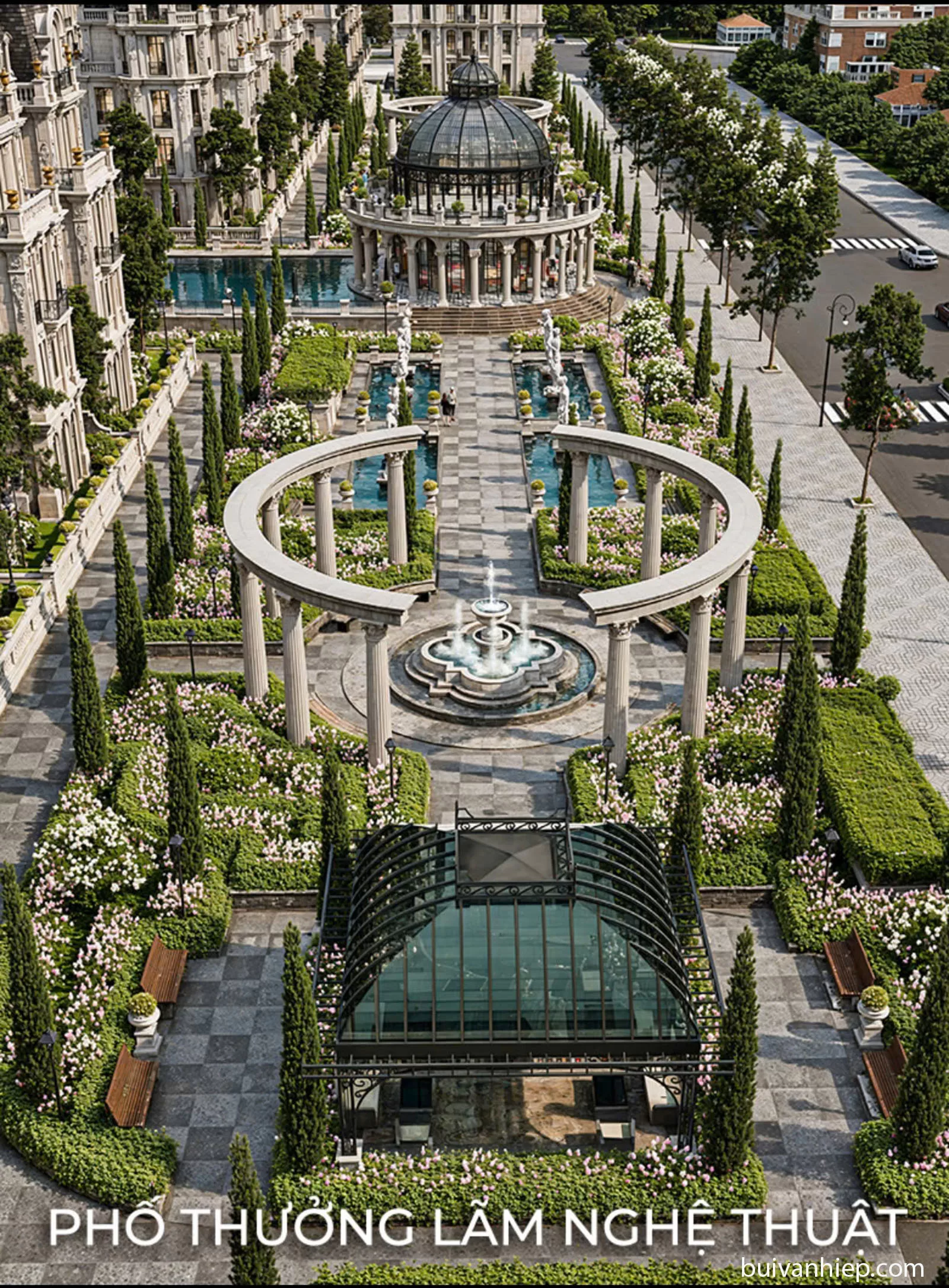 | Quảng trường trung tâm | Hệ mái vòm đối xứng, cột trụ uy nghi và tác phẩm điêu khắc đá nguyên khối mang phong cách Rome và Vienna. |