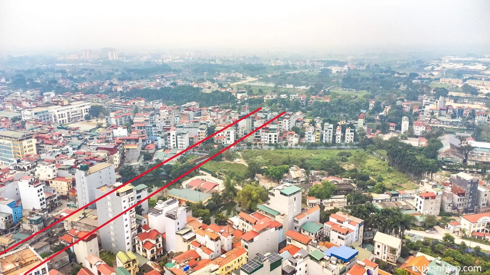 • Phía Bắc: Chỉ cách hơn 100m là quỹ đất quy mô lớn lên tới hơn 50 ha, đã được định hướng quy hoạch để phát triển thành Khu đô thị Vibex sầm uất và đồng bộ.